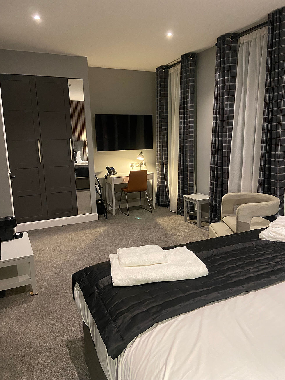 All our rooms have complimentary Nespresso coffee machines and complete hospitality trays with kettles for making a perfect cup of tea. Mood lighting, en-suite bathrooms with rain showers, handmade toiletries, complimentary WiFi and telephones (including UK landline and mobile calls), hairdryers, digital laptop room safes, ironing board & irons are provided and if you are not out and about exploring the Granite City, you can relax a watch a full Sky TV package including Sports & Movie channels on the large 55" LED Flat Screens.​